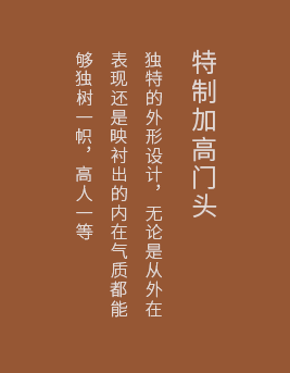 | 秉承中國“藏風(fēng)聚福”的傳統(tǒng)理念,研發(fā)出特殊的設(shè)計工藝,無需更改門洞尺寸,加高門框處理,添財納吉祥、五福入豪門 |